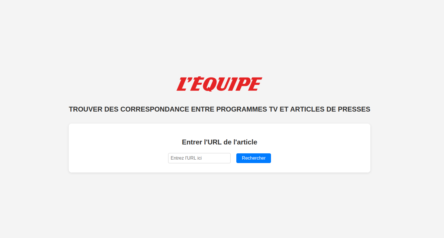 Lors de ce projet de Stage au sein de l'Équipe, j’ai développé un système de mise en correspondance entre des articles de la rédaction et les programmes TV prévus à la diffusion, dans le but de fluidifier le travail des équipes et d’automatiser certaines tâches éditoriales.